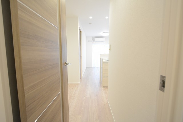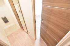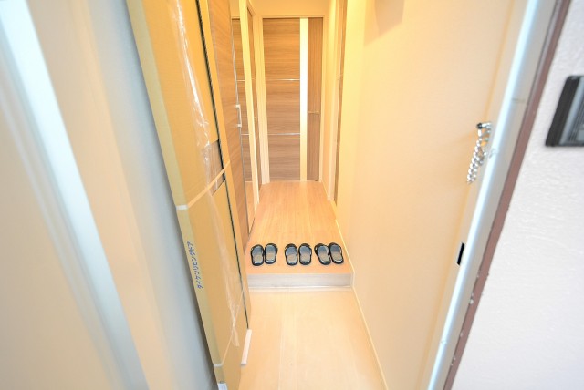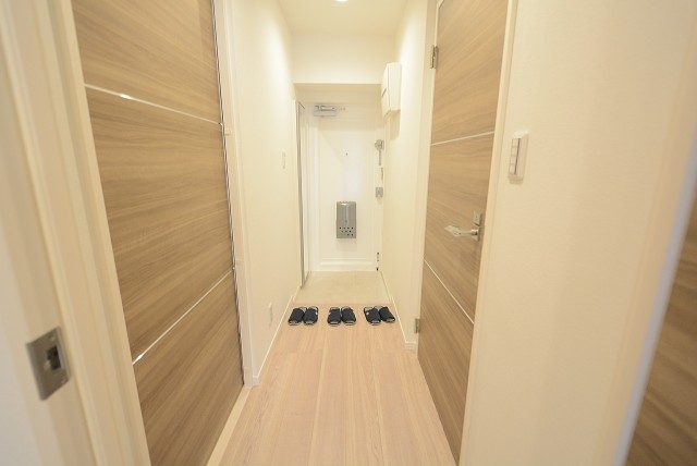 玄関を入ると、木目を生かしたナチュラルな雰囲気の廊下が、真っ直ぐに伸びていました。リノベーション済みなのでとても綺麗ですよ。