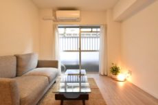 ダイニングとなっていますが、リビングのような感じになっています。おひとり暮らしだと、ダイニングとリビングを使い分けることもあまりないのかもしれませんね。家具付き物件なので、このソファーとセンターテーブル、ラグはそのまま付いて来ます。