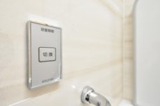 ノーリツ製の追い焚き機能が付いたユニットバス。「ふろ自動」ボタンひとつでお風呂を沸かすことが出来ます。そのまま保温してくれるのでいつでも温かいお風呂に入れますよ。