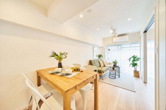 ■その他・・・フローリング貼替、壁・天井クロス張替、フロアタイル貼替、クッションフロア張替、建具・玄関収納交換、給湯器交換、エアコン(1基)、新規照明器具取付、収納棚新設、スイッチ・コンセント交換、ハウスクリーニング