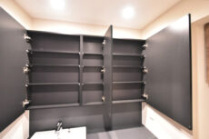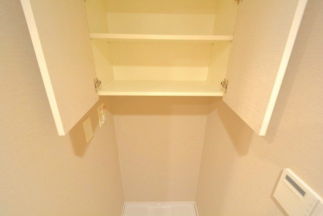 奥の洗濯機置場上部には吊戸棚が付いています。