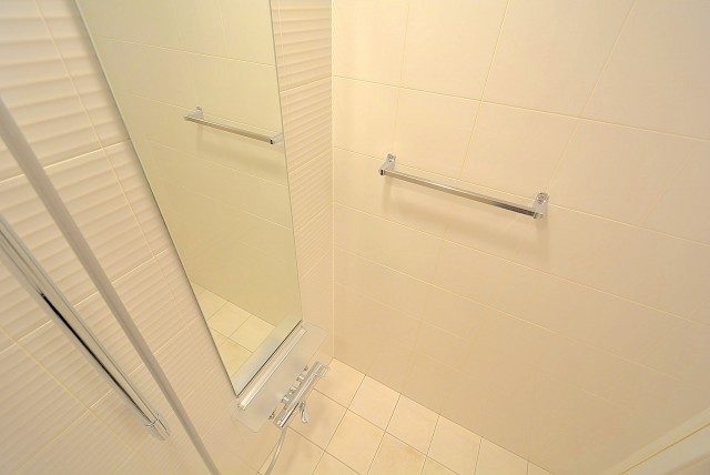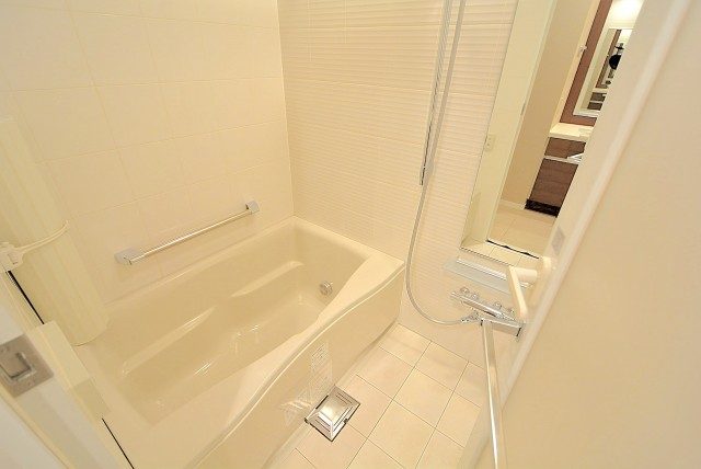 アイボリーカラーの浴室は落ち着いた雰囲気が出ていますね。