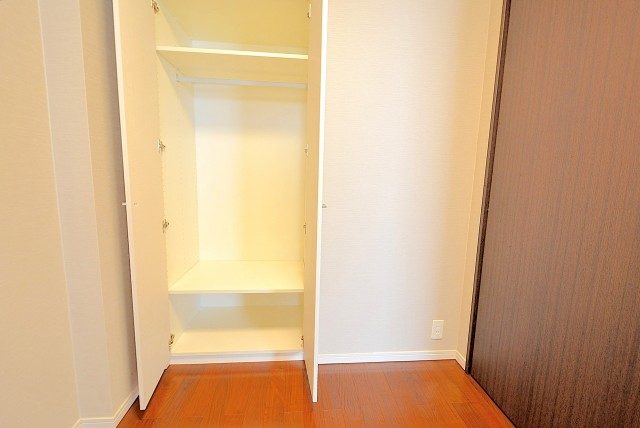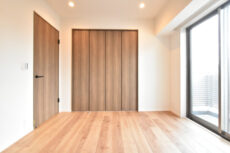 クローゼットは間口の広いタイプ。中が一目で確認出来て使いやすそうです。畳んだ衣服を入れられるような衣装ケースなどを置けば、外に収納家具を置く必要もなさそうです。