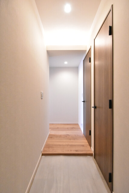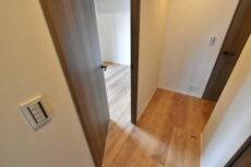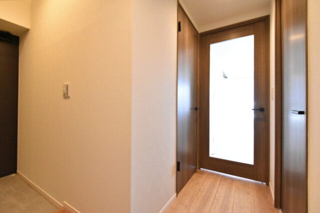 広い玄関から続く廊下は左に折れ曲がり、お部屋の中を窺うことが出来ないようになっています。今は宅配便やフードデリバリーなど玄関先に不特定多数の人が訪れる時代。プライバシー的にこういった造りは嬉しいですよね。