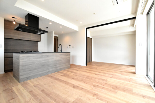 合わせて約17.4帖、南向きバルコニーに面したワイドスパンのお部屋の出来上がり!ご家族構成や状況に合わせてフレキシブルにレイアウトを変えられるのって便利ですよね。