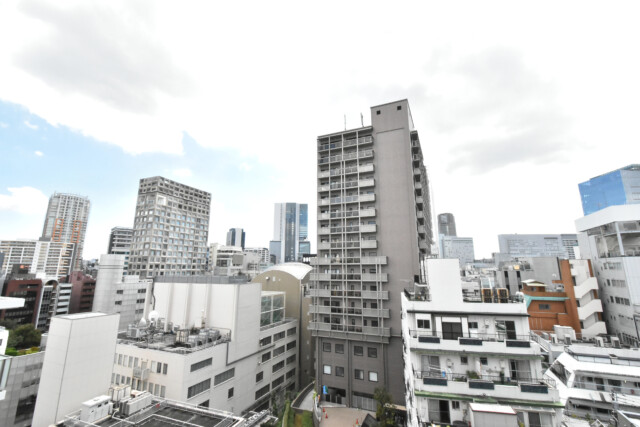 バルコニーからはビルが建ち並ぶ、都会らしい風景が望めます。