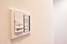 エアコンはビルドインタイプ。最近のエアコンはスタイリッシュになってきているとはいえ、せっかくの素敵なお部屋に余計なものを付けなくて済むのは有難いですね。