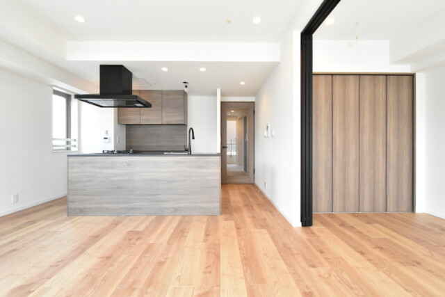 こちらは約12.9帖のリビング・ダイニング・キッチン。