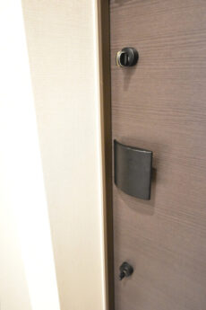 広い三和土ですが、外開きのドアがあることを考えるとあまり靴を出しっぱなしという訳にはいきません。玄関ドアにはダブルロック!安全面もバッチリです。