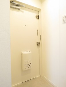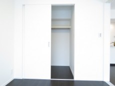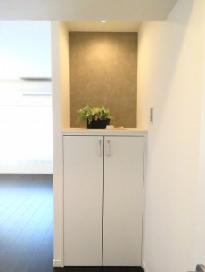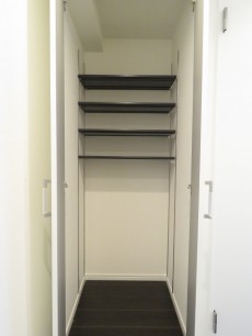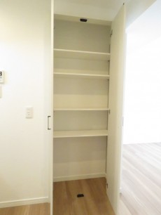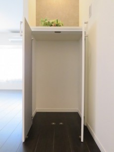 玄関をあがってすぐ正面の扉は奥行のある物入れ。