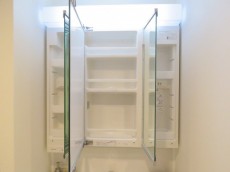 鏡の裏、洗面ボウル下と収納スペース豊富な洗面化粧台。ゴチャゴチャ散らかりがちな洗面まわりもスッキリ片付くハズ。