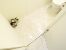トイレ内はゆったりスペースがとられているので、ちょっとしたキャビネットなどを置いて収納スペースを増やしてもいいかも・・・。