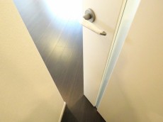 手前から物入れ、洗面室、LDKの扉が並んでいるので順番にご紹介いたします。