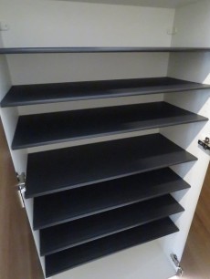 奥の棚のついた部分に靴を、手前のスペースに掃除機や日用品のストックなどを入れておくとよさそうな感じです。