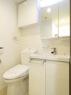 ■洗面所・・・洗面化粧台 (Panasonic)、洗濯水栓、防水パン