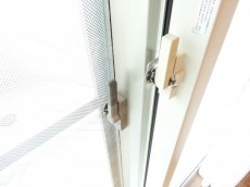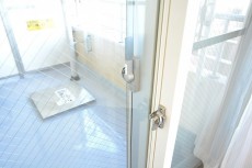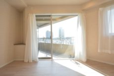 洋室からはバルコニーに出られるようになっています。(バルコニーは2か所あります)扉は二重サッシ。窓にはウィンドフィルムが貼られ、プライバシーも確保しています。