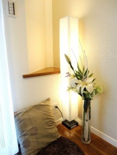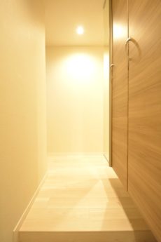 玄関を入ると正面にカウンタータイプのシューズBOXがありオブジェのディスプレイなどに長保します。