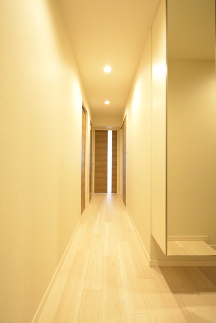 廊下はⅬ字に曲がり玄関~お部屋の中が見えない造りになっています。