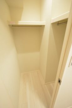 こちらのお部屋の収納もウォークインクローゼットで、可動棚も設置されています。