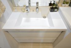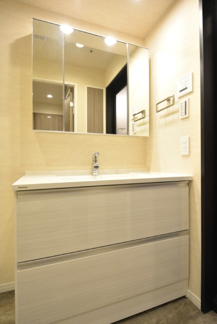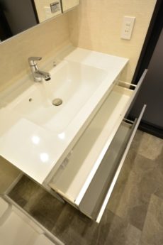 ■洗面・・・パナソニック製シャワー付洗面台(サイドキャビネット付き)