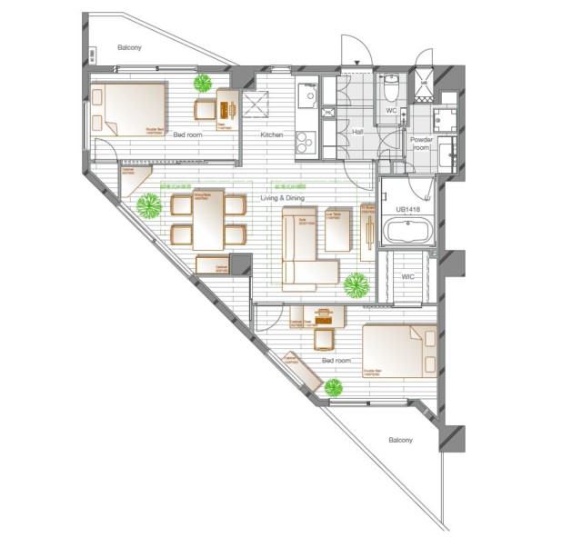 【LDK:約15帖・エアコン・床暖房・家具付(小物を除く)】