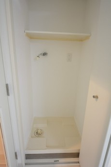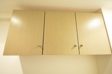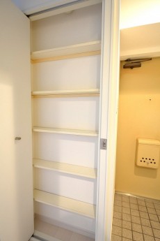 リビングダイニングの入口を入って左側には洗濯機置場が設置されています。扉付きなので使用していない時は、生活感も隠せておけます。上にしっかり洗剤の置場も確保されています。
