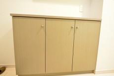 玄関を上がり、左には、セパレートタイプのシューズBOXが設けてあります。カウンターになっている部分には、インテリアのディスプレイも楽しめます。