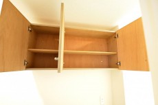 ウォシュレット付き。上には吊棚が設置されています。