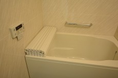 浴室換気乾燥機能つきのバスルーム。白基調の明るい空間で1日の疲れもスッキリとることができそう。保温・追い焚き機能も完備なのでいつでもあたたかいお風呂に入れますよ。