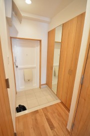 玄関を入ると左手には扉の半分がミラーになっているシューズBOXが