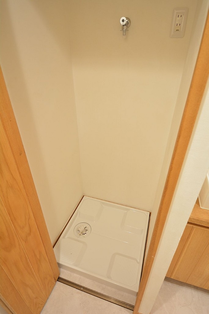 洗面化粧台の左隣は洗濯機置場。扉がついているので使わないときはしめて