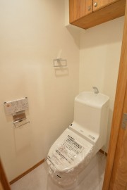 ウォシュレットと吊戸棚付きです。