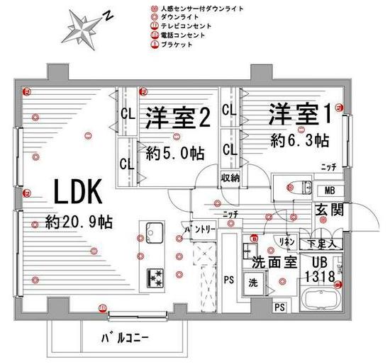 LDKには枕棚のついたクローゼットもつくられています。