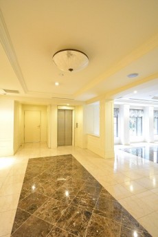オートロックを抜けると、広々とした大理石敷きのエントランスホールが左右に広がります。