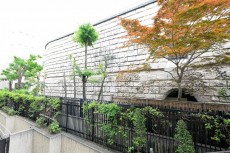 正面に松濤美術館がありますが、植栽の緑を望みます。