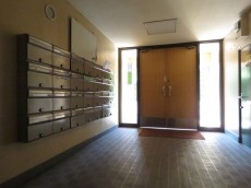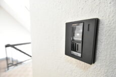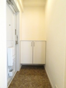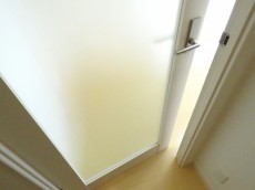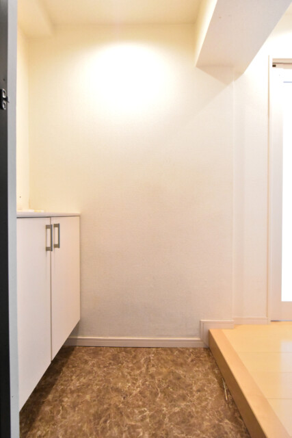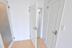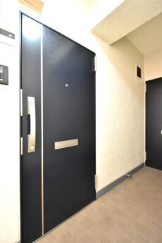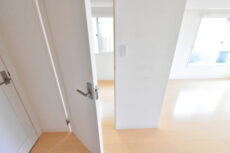今回のお部屋は内廊下風の部分。ドア横にはモニター付きインターホンが設置されていて、お部屋の中から訪問者を確認する事が出来ます。手が離せない時などにはとても助かりますよね。ドアスコープもありますが、向こうからも覗かれているようで苦手です(^-^;