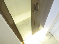 玄関横に設置されたシューズBOXはたっぷり仕舞えるトールサイズ。表扉の一部には縦長の鏡がついており、お出かけ前の身だしなみチェックもサッと済ませられます。