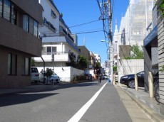 前面道路。にぎやかなエリアから少し離れているので周囲は静かな住宅街です。