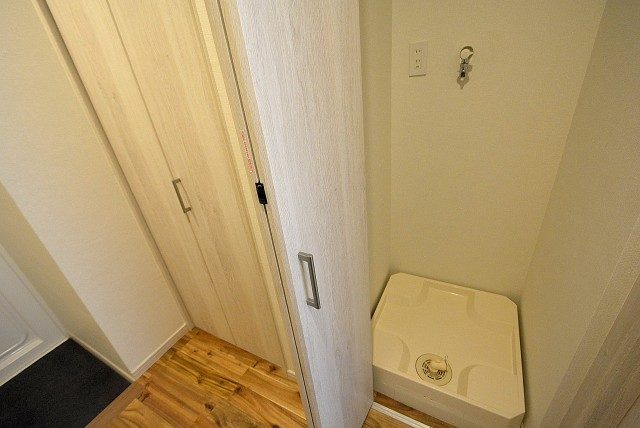 洗濯機置場は独立して洗面室の向かい側にありました。