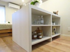 カウンターの片面は収納になっています。