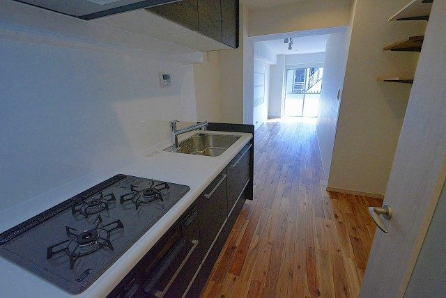 キッチンはLDKの扉を入ってまっすぐ進んだ先にあります。ちなみにキッチンのお隣はクローゼットが設けられています。