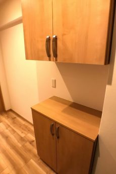 ペーパーのストックやリネン類などまとめてここへ置いておけそうです。