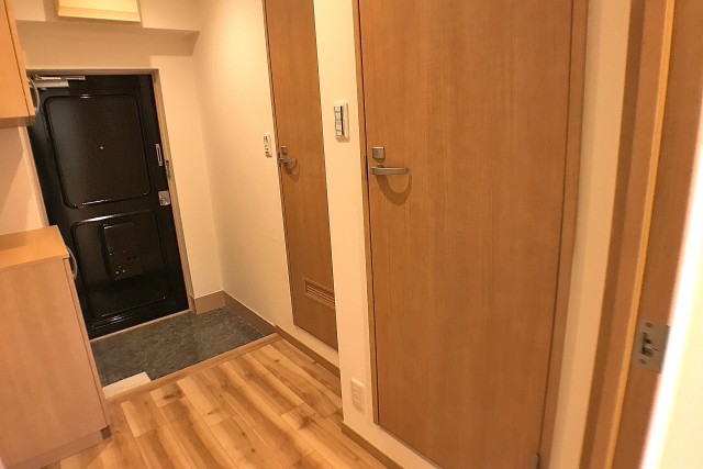 TVモニタ付きインターフォン完備の玄関前。