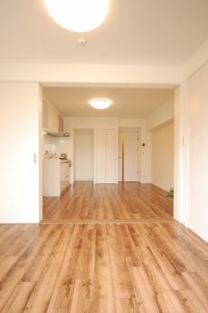 ■その他・・・フローリング貼替、建具・玄関収納交換、壁・天井クロス貼替、フロアタイル貼替、クッションフロア貼替、給湯器交換、エアコン(1基)、新規照明器具取付、収納棚新設、カラーTVモニター付きインターホン、スイッチ・コンセント交換、ハウスクリーニング