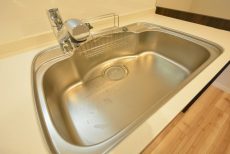 流し台には水切りがあり、まな板などが清潔に保てます♪