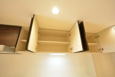 調理台奥の棚には頻繁に使用する調味料や調理機器などを置くことができ便利です♪