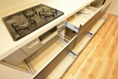 横に大きなキッチンは調理台や流し台、収納などがすべて大きいです!