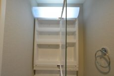 お部屋を大きく見せてくれるワイドミラーが使われています♪