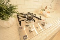デザイン性の高いコンロやオープンシェルフなど、全てにおいてこだわり抜いた「見せるキッチン」。