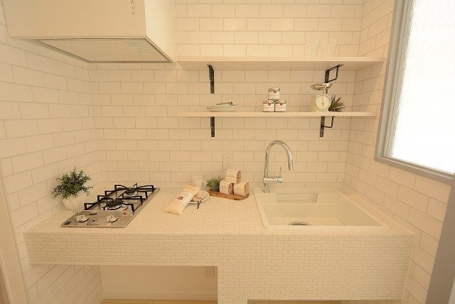 壁面や天板には白のモザイクタイルを施し、ほっこりとしたあたたかみのある空間が生まれました。